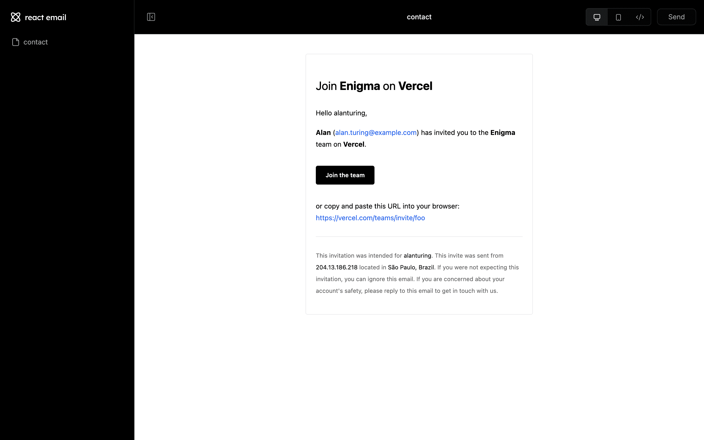 Create and preview email templates with a React-based email library, then send them with a simple API powered by Resend.